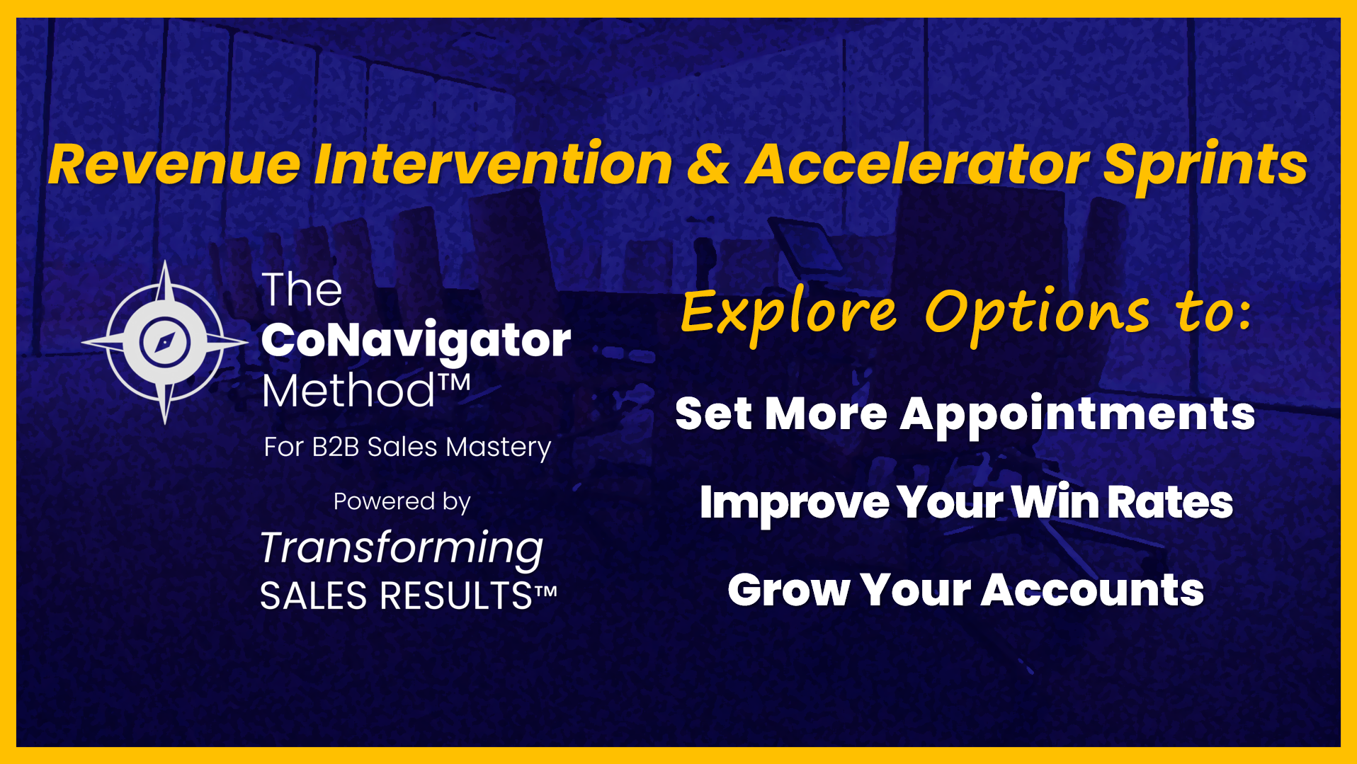 Sales teams are working harder than ever, yet many aren’t improving. Activity doesn’t equal effectiveness—or growth. That’s why I created the CoNavigator Revenue Intervention Sprints: focused, high-impact solutions that address your most critical revenue constraints. Pipeline Creation: Setting more & better quality appointments Opportunity Conversion: Improving opportunity win rates Account Expansion: Growing accounts strategically The […]